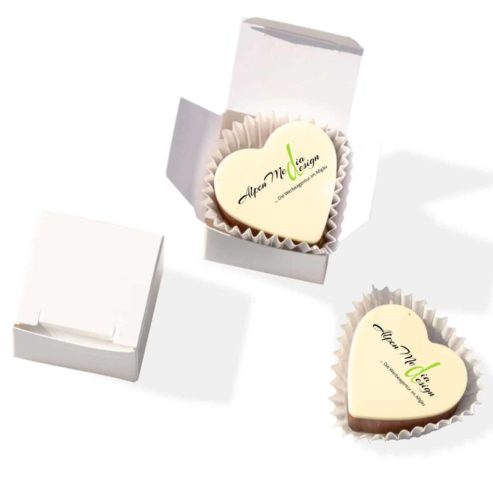 Unsere Pralinen mit Deinem Logo, Text oder Foto überzeugen nicht nur durch ihren besonders hochwertigen Geschmack und den perfekten Druck, Sie können auch noch zwischen 3 verschiedenen Pralinenformen wählen. Wir stellen unsere Pralinen in Handarbeit in den Formen: karree, rund oder herz her.